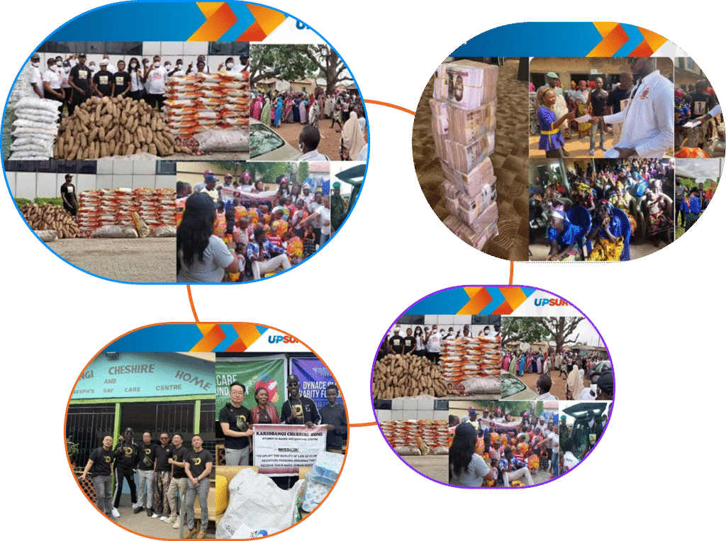 At Dynace UPSURGE Nigeria, we believe wellness is only complete when it creates real change beyond the individual. That’s why we support a range of social initiatives—health outreach, charity, and local empowerment programs—that uplift families, communities, and future leaders.
